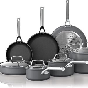 Ninja C39800 Foodi NeverStick Premium 12-Piece Cookware Set, Hard-Anodized, Nonstick, Durable & Oven Safe to 500°F, Slate Grey