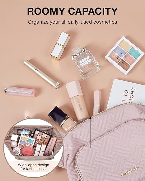 【 ROOMY CAPACITY 】- 8.2 x 4 x 6.7 inch. makeup travel bag is large enough for your 5-7 days travelling or daily use. The spacious makeup organizer bag can hold your full-sized cosmetics, make up tools, toiletries, or travel essentials.